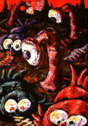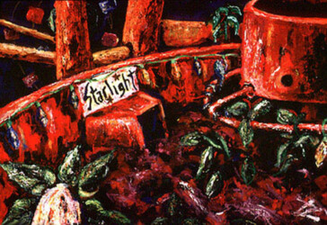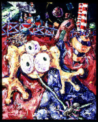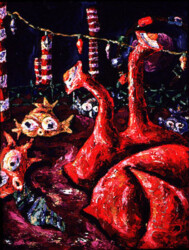 Back in the olden days, there used to be an abandoned roadside animal attraction in South Georgia called Mackey’s Animal Farm, more affectionately known as the Monkey Farm. When I used to paint like a crazy person, I did a bunch of pieces about the animals I imagined inhabited the park in its prime.