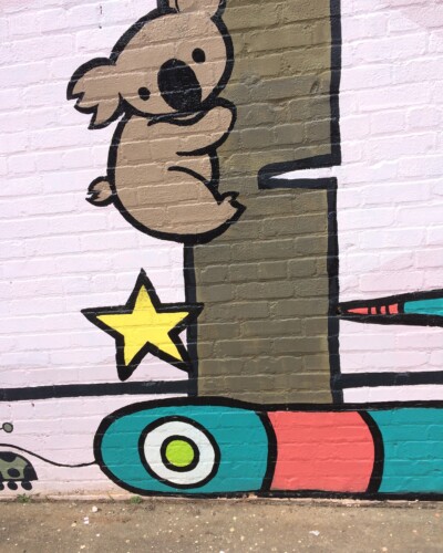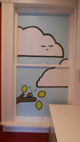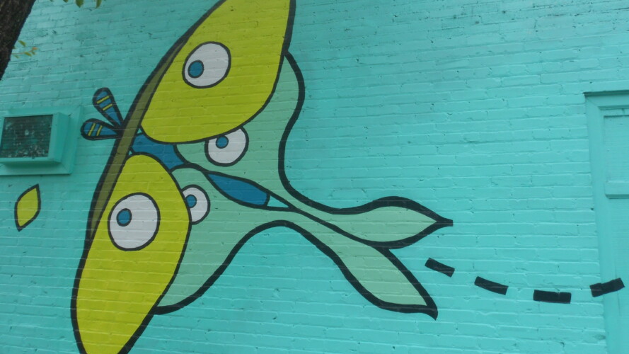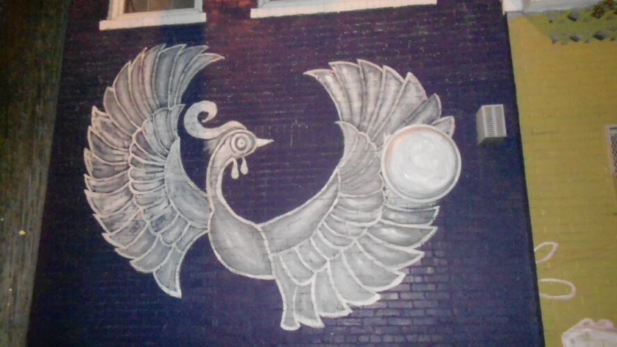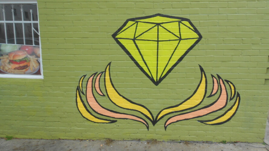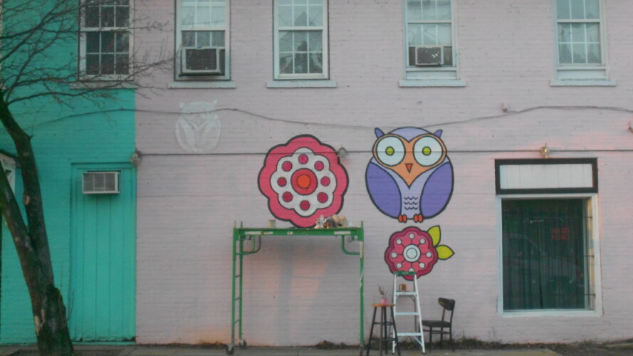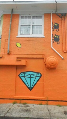 I painted this one in 2012. It takes up a full block of a city street and has 5 sides and 2 stories.